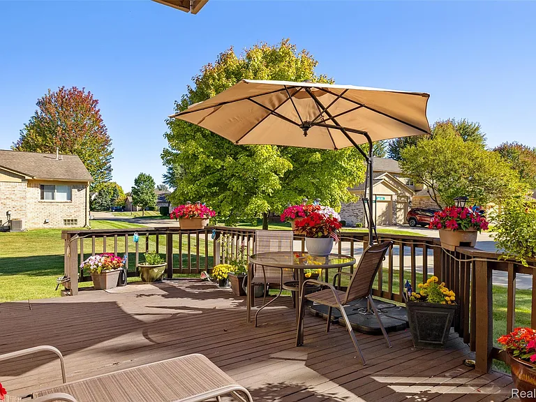 Welcome home to this beautifully maintained condo in the heart of Clinton Township. Offering 2 bedrooms, 1.5 bathrooms, and 988 square feet of living space with a partially finished basement, this home combines comfort, convenience, and style. The updated kitchen is designed to impress with granite countertops, an integrated sink, ceramic tile flooring, and white cabinetry that gives the space a fresh and modern feel. The open floor plan allows natural light to pour in creating warm and inviting spaces for both everyday living and entertaining. The family room flows seamlessly to the outdoors, where sliding doors open to a very large wood deck. Perfect for summer gatherings, the deck also features a gas hook up for a BBQ, making it easy to enjoy dining and relaxing outside. The partially finished basement offers additional living or storage space, adding to the versatility of this home. Nestled in a desirable community, this condo provides a low-maintenance lifestyle while keeping you close to all that Clinton Township has to offer. With its thoughtful updates, this home is move-in ready and waiting for you to make it your own.